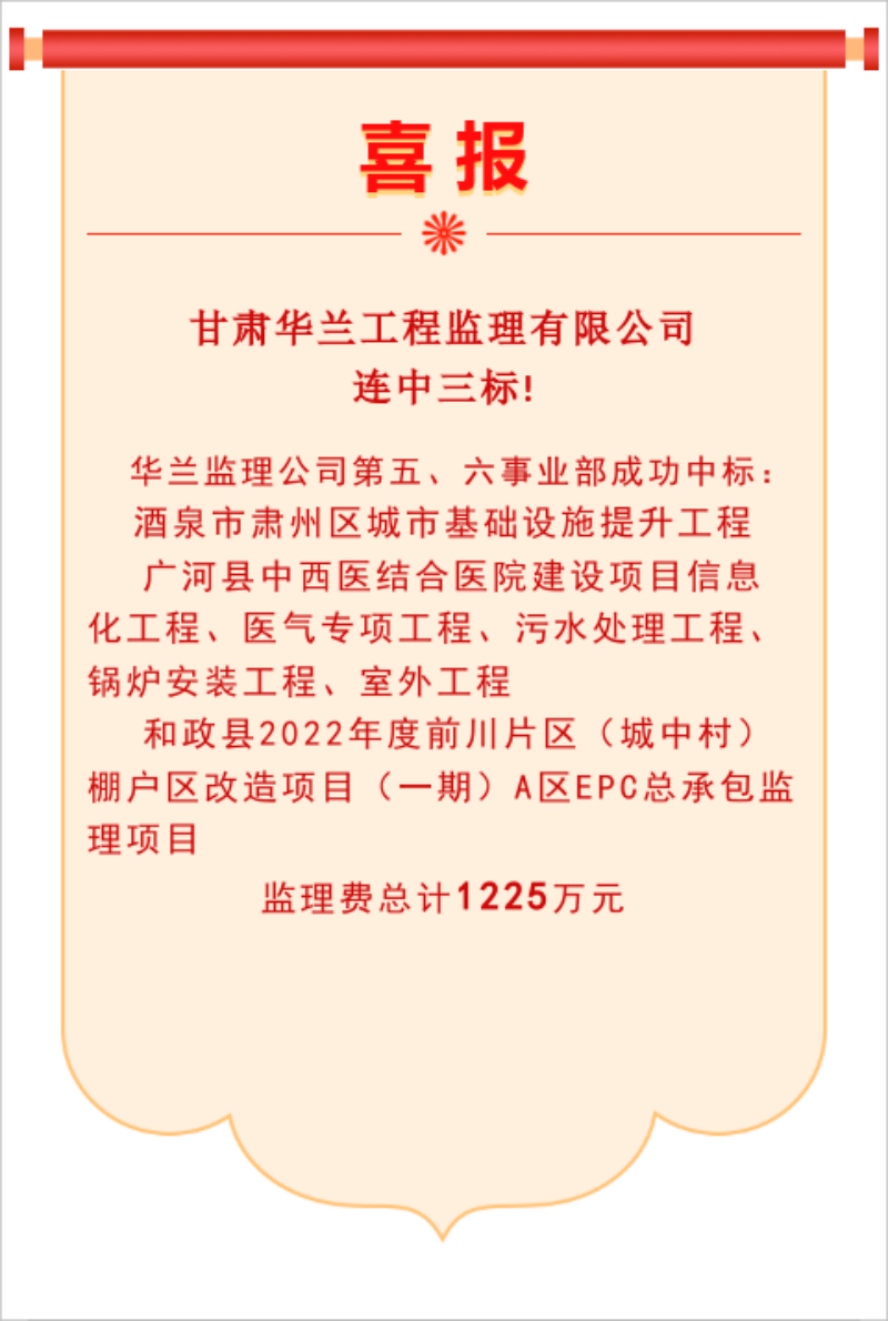 甘肅華蘭工程監(jiān)理有限公司連中三標(biāo)!