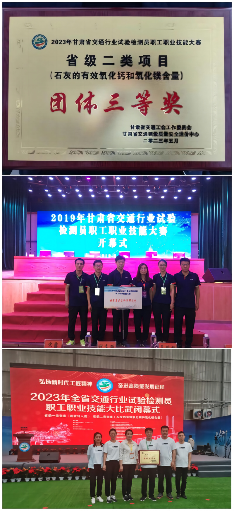 2023年市政公路專業(yè)事業(yè)部在由省百萬(wàn)職工職業(yè)技能素質(zhì)提升活動(dòng)組委會(huì)、甘肅省交通運(yùn)輸廳舉辦的“甘肅省交通行業(yè)試驗(yàn)檢測(cè)員職工職業(yè)技能大賽”活動(dòng)中,取得了團(tuán)體和個(gè)人獎(jiǎng)項(xiàng)。在全省公路工程試驗(yàn)檢測(cè)機(jī)構(gòu)和在建項(xiàng)目工地試驗(yàn)室比對(duì)試驗(yàn)中獲“滿意”結(jié)果。