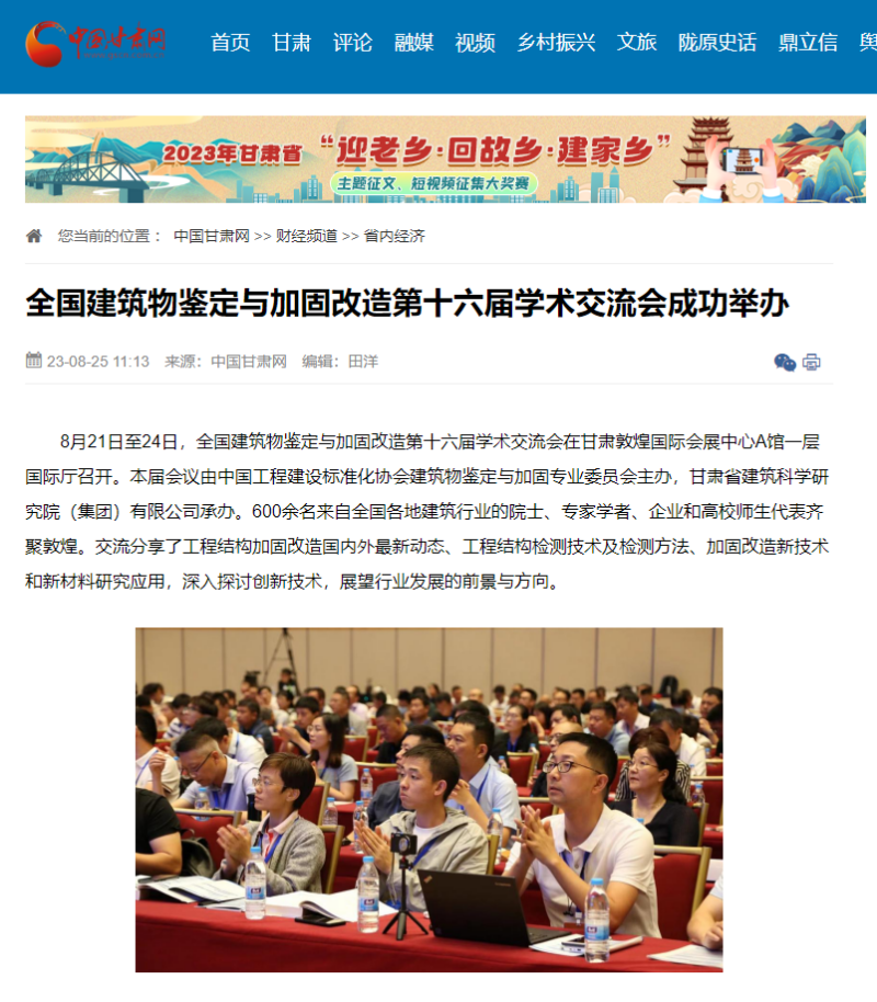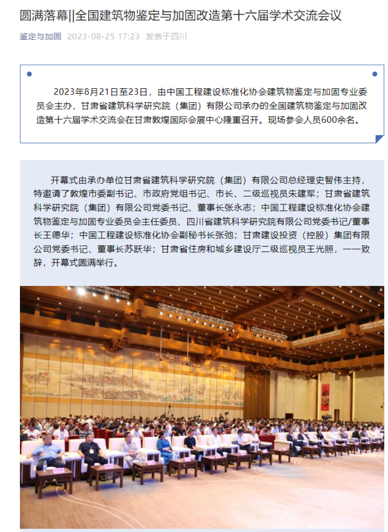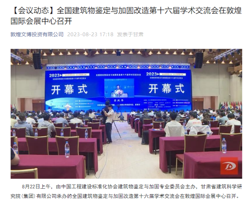 8月21日-8月24日,全國建筑物鑒定與加固改造第十六屆學(xué)術(shù)交流會在甘肅敦煌召開,由掌上敦煌、視聽甘肅、甘肅建科院視頻號平臺對會議現(xiàn)場進(jìn)行直播,多家主流媒體紛紛聚焦報(bào)道。