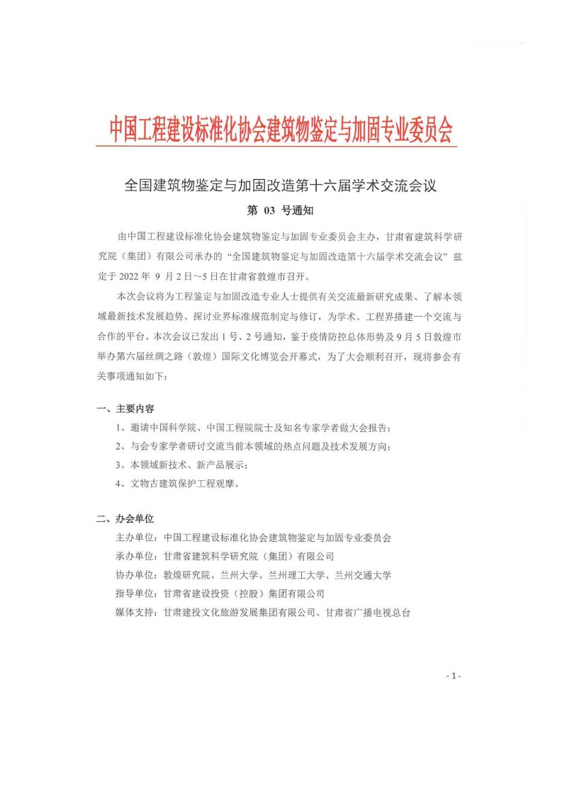 全國建筑物鑒定與加固改造第十六屆學(xué)術(shù)交流會(huì) 03號(hào)通知