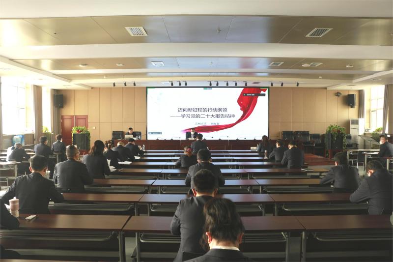 宣講會上,劉先春教授以大會主題和“三個務(wù)必”作為出發(fā)點(diǎn),深入闡釋了黨的宗旨、堅守的傳統(tǒng)和發(fā)揚(yáng)的精神,又從過去5年的工作和新時代10年的偉大變革、開辟馬克思主義中國化時代化新境界、新時代新征程中國共產(chǎn)黨的使命任務(wù)等15個方面,結(jié)合當(dāng)今國內(nèi)、國際政治、經(jīng)濟(jì)、社會、文化發(fā)展的歷史現(xiàn)實(shí)情況,深入地對黨的二十大精神進(jìn)行了系統(tǒng)宣講和闡釋。他表示,“兩個確立”是黨在新時代取得的重大政治成果,是推動黨和國家事業(yè)取得歷史性成就、發(fā)生歷史性變革的決定性因素。