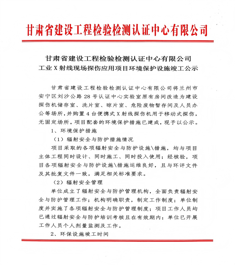 工業(yè)X射線現(xiàn)場探傷應用項目環(huán)境保護設施竣工公示