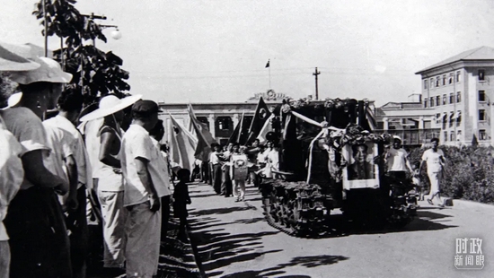 △1958年7月,第一臺國產“東方紅”牌拖拉機在洛陽拖拉機廠下線。(圖/視覺中國)