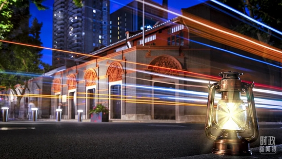 △上海,夜色中的中共一大會址。(圖/視覺中國)