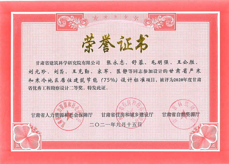 2020年度甘肅省優(yōu)秀工程勘察設(shè)計(jì)二等獎(jiǎng)