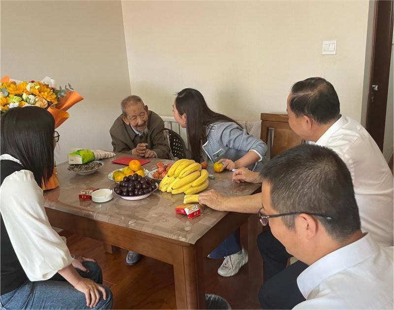 在薛篤昶老人家中,看到他在家人的照顧下,身體健康,精神狀態(tài)很好,大家都非常高興。趙媛仔細詢問了薛老的起居飲食情況,叮囑老人家屬要照顧好老人的日常生活,并表示“家有一老,如有一寶”,百歲老人不僅是家中兒女們的幸福,也是社會和諧發(fā)展的重要標志。