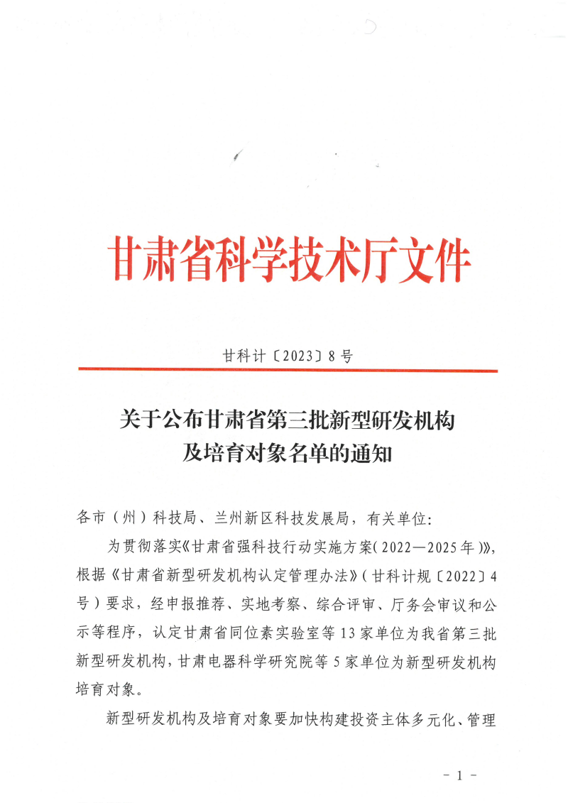 據(jù)了解,省級“新型研發(fā)機構(gòu)”是指在甘肅省內(nèi)注冊并運營,聚焦科技創(chuàng)新需求,主要從事科學研究、技術(shù)創(chuàng)新和研發(fā)服務,投資主體多元化、管理制度現(xiàn)代化、運行機制市場化、用人機制靈活的獨立法人機構(gòu)。