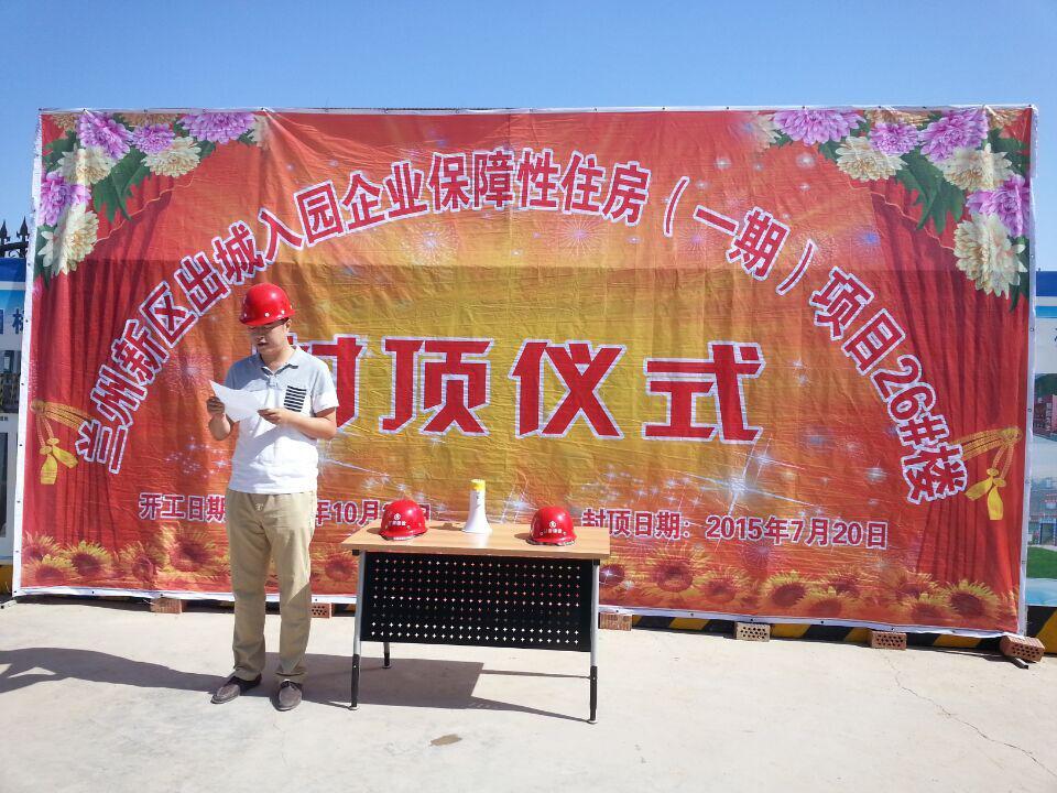 在建設單位、施工單位、監(jiān)理單位各方共同努力下,由科研院華蘭監(jiān)理公司承擔監(jiān)理的“甘肅建投蘭州新區(qū)保障性住房一期工程”項目26#樓主體結構于2015年7月20日順利封頂。